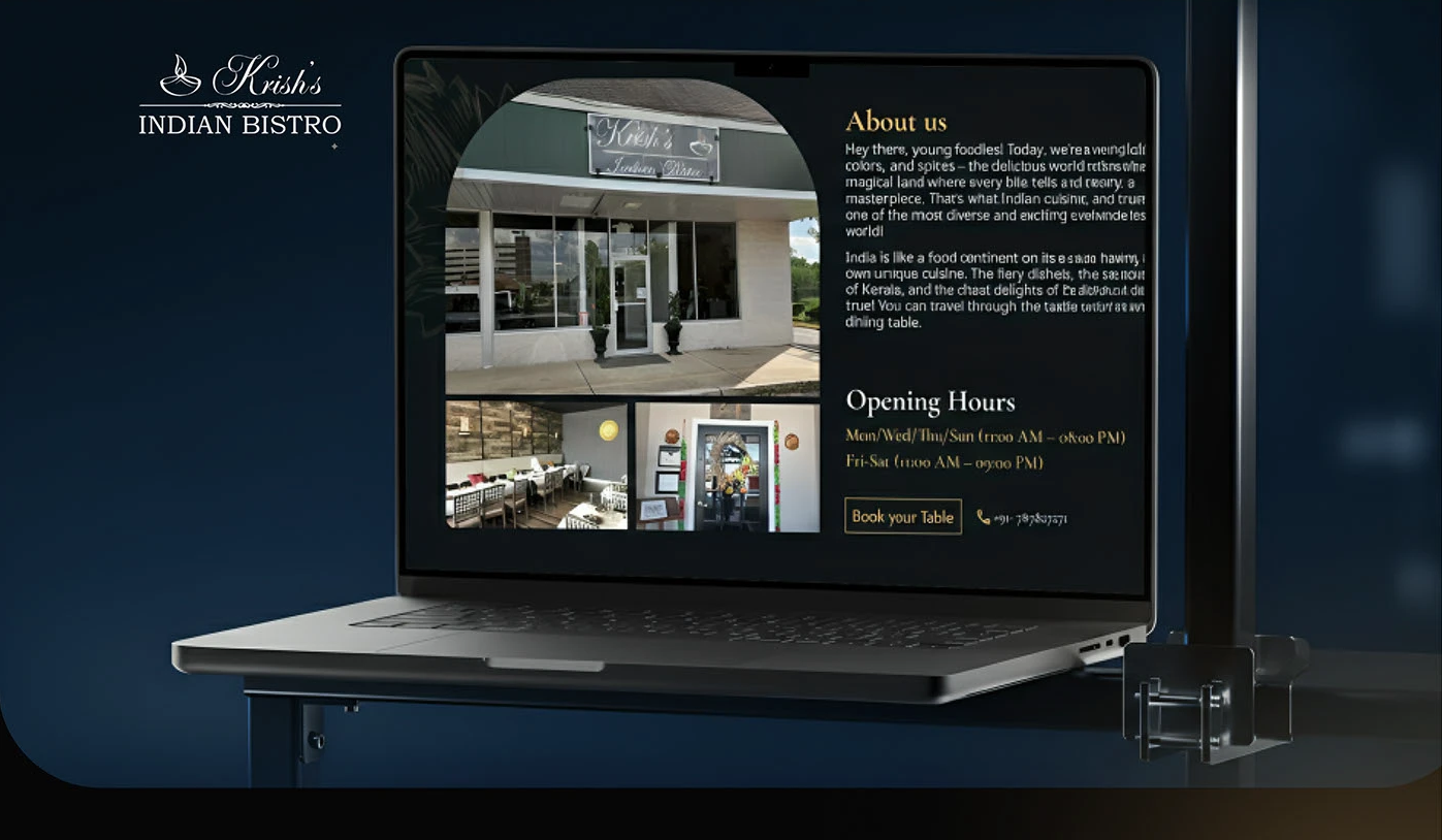 Krish's Indian Bistro is a modern culinary website designed to showcase an authentic yet contemporary Indian dining experience.