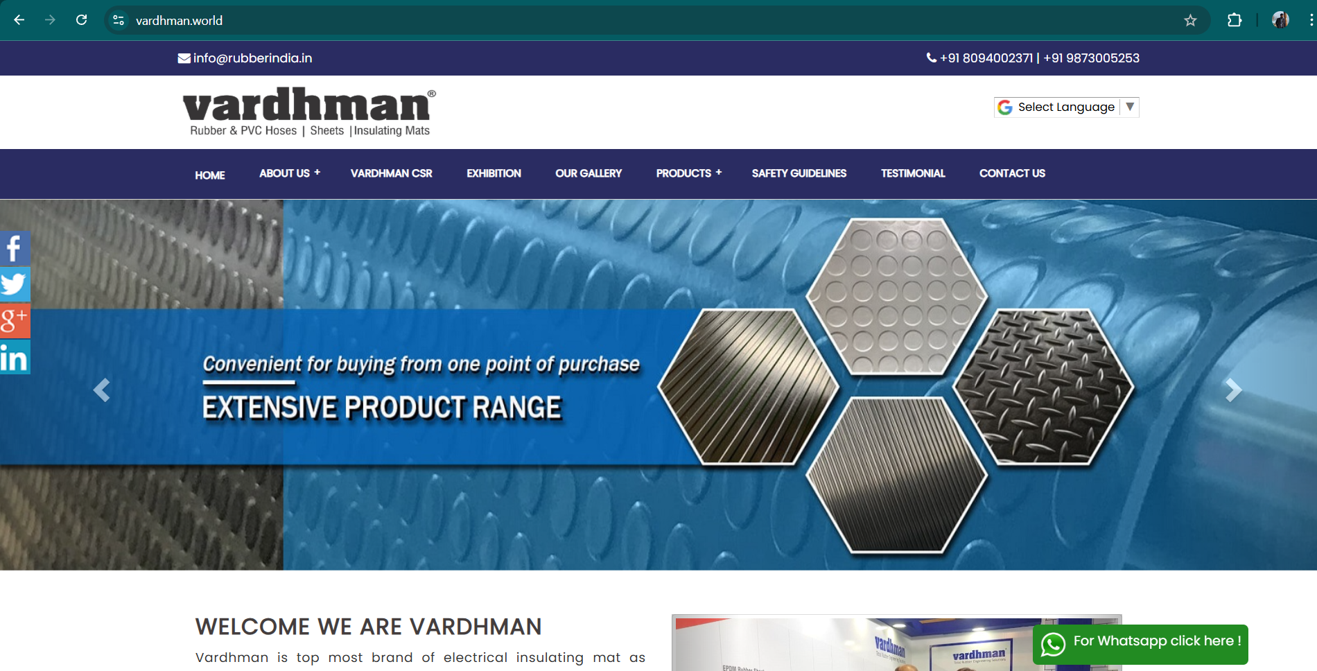 Vardhman is a leading industrial manufacturing platform specializing in high-quality Rubber & PVC Hoses, Sheets, and Insulating Mats.